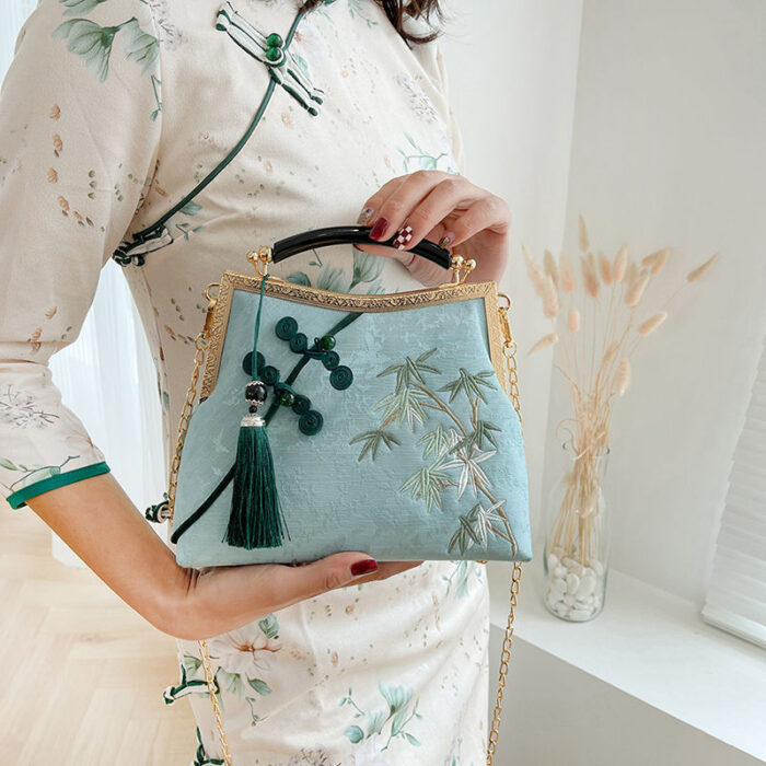 This Embroidered Ancient Style Clutch Bag showcases timeless craftsmanship with its intricate embroidery and classic design. Compact yet elegant, it’s perfect for carrying essentials while adding a vintage charm to evening wear, weddings, or cultural events.